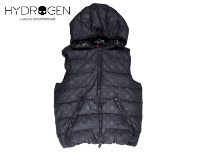 ハイドロゲン バイ デュベティカ ダウンベスト HYDROGEN BY DUVETICA 23D010 BLACK ALLOVER DOWN VEST フード付き ブラック系 ナイロン オールオーバー ダウンベスト ダウンジレ 袖無しダウンジャケット