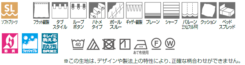 SL ソフトプリーツ加工[形態安定加工]カーテンの裾の広がりを抑える加工を施した縫製仕様です。