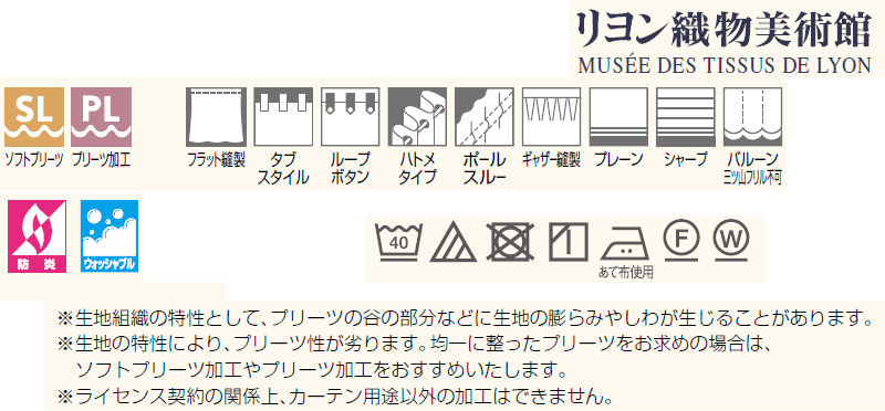 SL ソフトプリーツ加工[形態安定加工]カーテンの裾の広がりを抑える加工を施した縫製仕様です。
