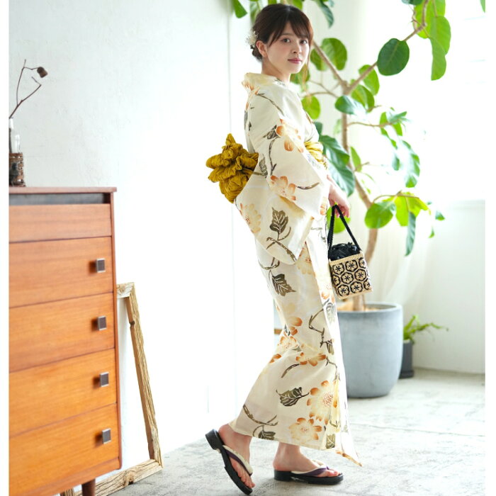 【60%OFF】浴衣 セット レディース 浴衣 3点セット(浴衣/帯/下駄)白 きなり クリーム 黄色 緑 ぼかし 流水 向日葵 ひまわり 昭和初期アンティークデザイン復刻版 浴衣セット ゆかた 女性 レトロ ゆったりサイズ 大きいサイズ