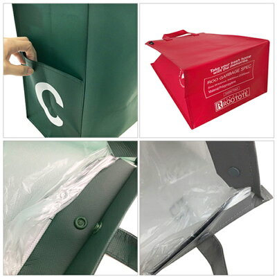簡単にポリ袋が取り付けることができるボタン付き 四辺のスナップボタンでポリ袋などを止められるので、袋とバッグの間にすき間ができることなくゴミをスムーズに捨てられます。
